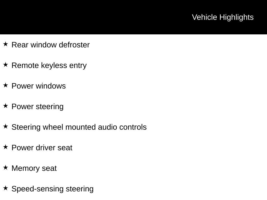 - Smart remote entry system w/pwr window control, pwr trunk release, pwr moonroof control