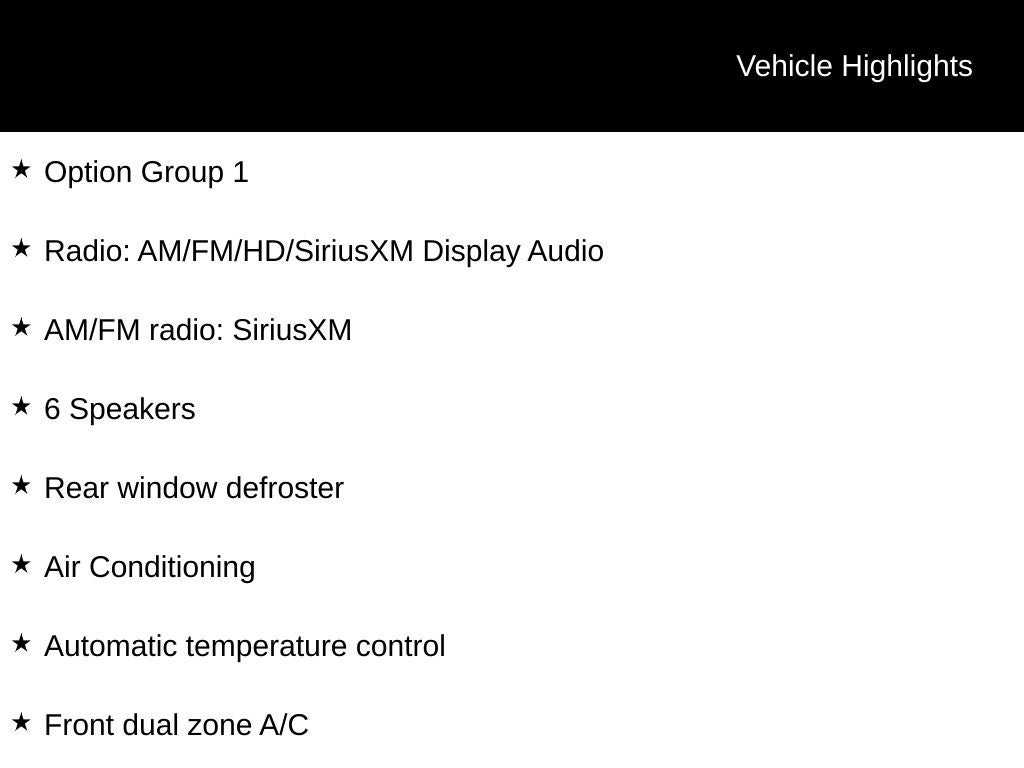 - Radio: AM/FM/HD/SiriusXM Display Audio -inc: 7-inch screen, Android Auto and Apple CarPlay