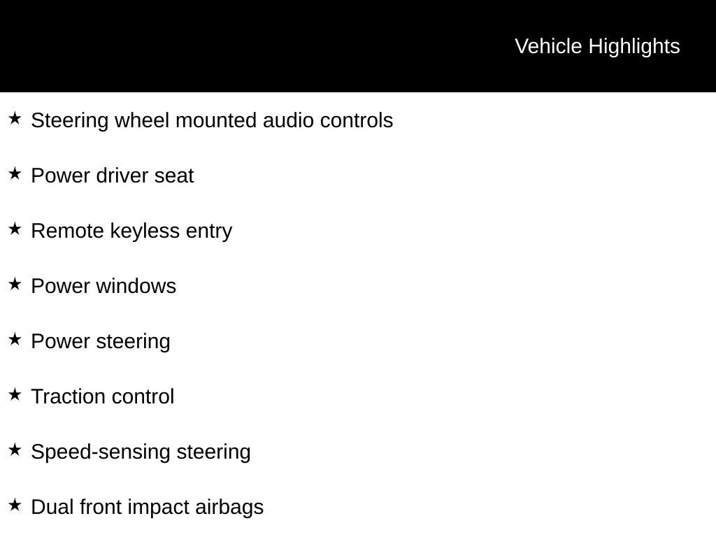 - Cruise Control w/Steering Wheel Controls