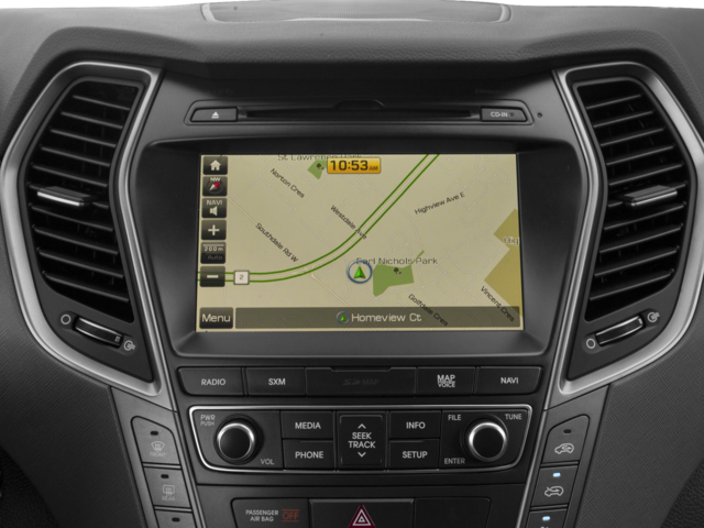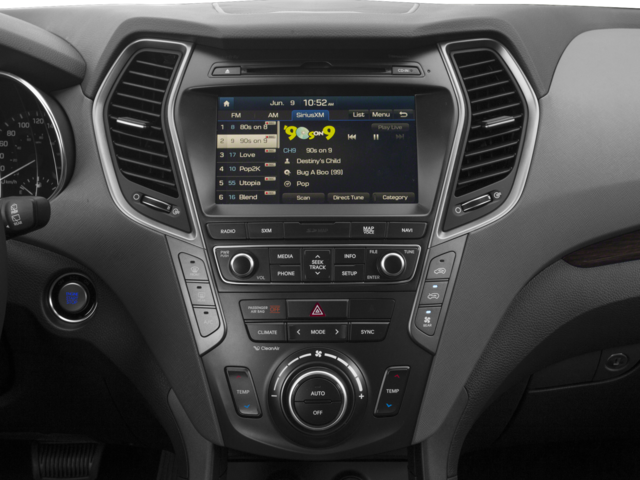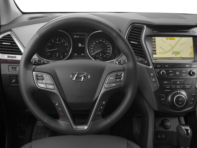 2017 Hyundai Santa Fe Night Sky Pearl SE Ultimate FWD 6-Speed Automatic with Shiftronic 3.3L V6 DGI DOHC 24V Gray Leather, 12 Speakers, 19 x 7.5J Aluminum Alloy Wheels, 3.041 Axle Ratio, 3rd row seats: split-bench, 4-Wheel Disc Brakes, ABS brakes, Air Conditioning, Alloy wheels, AM/FM radio: SiriusXM, Android Auto, Auto-dimming Rear-View mirror, Automatic Emergency Braking, Automatic temperature control, Brake assist, Bumpers: body-color, Cargo Cover, Cargo Tray, Carpeted Floor Mats, CD player, Compass, Delay-off headlights, Driver door bin, Driver vanity mirror, Dual front impact airbags, Dual front side impact airbags, Dynamic Bending Light, Electronic Parking Brake, Electronic Stability Control, Emergency communication system: Blue Link, Exterior Parking Camera Rear, Four wheel independent suspension, Front anti-roll bar, Front Bucket Seats, Front Center Armrest, Front dual zone A/C, Front fog lights, Front reading lights, Fully automatic headlights, Garage door transmitter: HomeLink, Heated & Ventilated Multi-Adjustable Bucket Seats, Heated door mirrors, Heated front seats, Heated rear seats, Heated steering wheel, High Beam Assist, High-Intensity Discharge Headlamps, Illuminated entry, Knee airbag, Lane Departure Warning System, Leather Seating Surfaces, Leather steering wheel, Low tire pressure warning, Memory seat, Navigation System, Occupant sensing airbag, Outside temperature display, Overhead airbag, Overhead console, Panic alarm, Passenger door bin, Passenger vanity mirror, Power door mirrors, Power driver seat, Power Liftgate, Power moonroof, Power passenger seat, Power steering, Power windows, Radio: AM/FM/SiriusXM/CD/HD/MP3 w/Navigation, Rear air conditioning, Rear anti-roll bar, Rear Parking Sensors, Rear seat center armrest, Rear window defroster, Rear window wiper, Remote keyless entry, Roof rack: rails only, SE Ultimate Tech Package 03, Security system, Smart Cruise Control, Speed control, Speed-sensing steering, Split folding rear seat, Spoiler, Steering wheel mounted audio controls, Tachometer, Telescoping steering wheel, Tilt steering wheel, Traction control, Trip computer, Turn signal indicator mirrors, Variably intermittent wipers, Ventilated front seats.