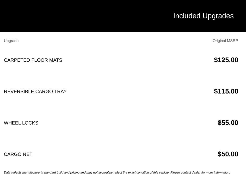- Interior Trim -inc: Simulated Carbon Fiber Instrument Panel Insert, Simulated Carbon Fiber Door Panel Insert and Metal-Look Interior Accents