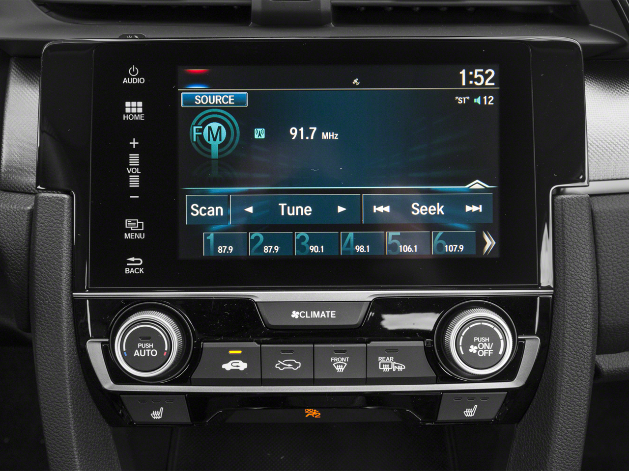 - Radio: 160-Watt AM/FM Audio System -inc: 4 speakers, 5-inch color LCD screen, Bluetooth® HandsFreeLink, Bluetooth® streaming audio, radio data system (RDS), speed-sensitive volume control (SVC), 1.0-amp USB audio interface port in front, illuminated steering wheel-mounted audio controls and integrated rear-window antenna