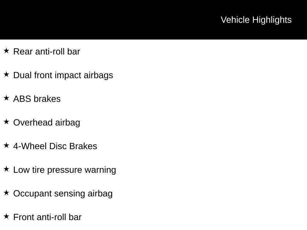 - 4-Wheel Disc Brakes w/4-Wheel ABS, Front Vented Discs, Brake Assist and Hill Hold Control