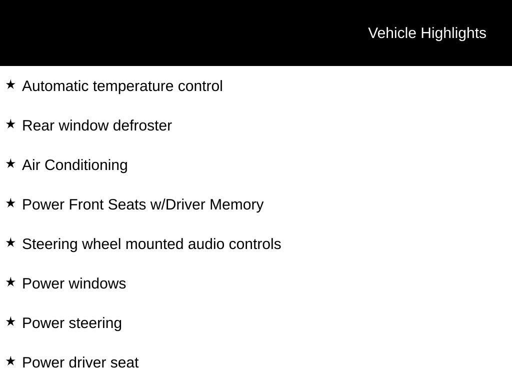 - Power Front Seats w/Driver Memory