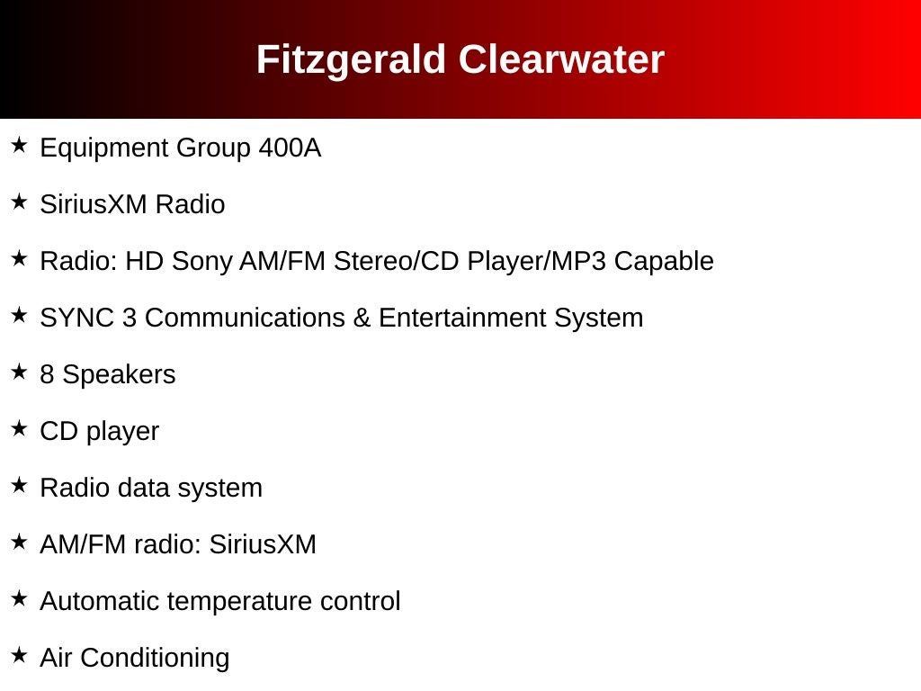 - Radio: HD Sony AM/FM Stereo/CD Player/MP3 Capable -inc: 8 speakers and steering wheel redundant audio controls