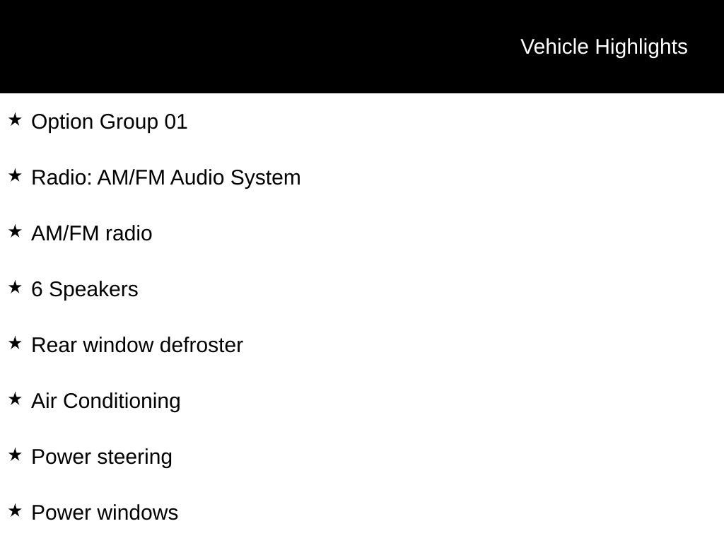 - Radio w/Seek-Scan, Clock, Speed Compensated Volume Control and Steering Wheel Controls