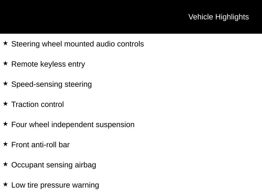 - Cruise Control w/Steering Wheel Controls