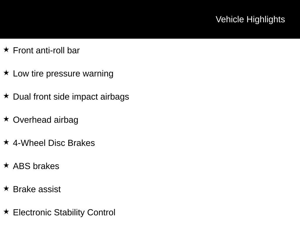 - 4-Wheel Disc Brakes w/4-Wheel ABS, Front Vented Discs, Brake Assist and Hill Hold Control