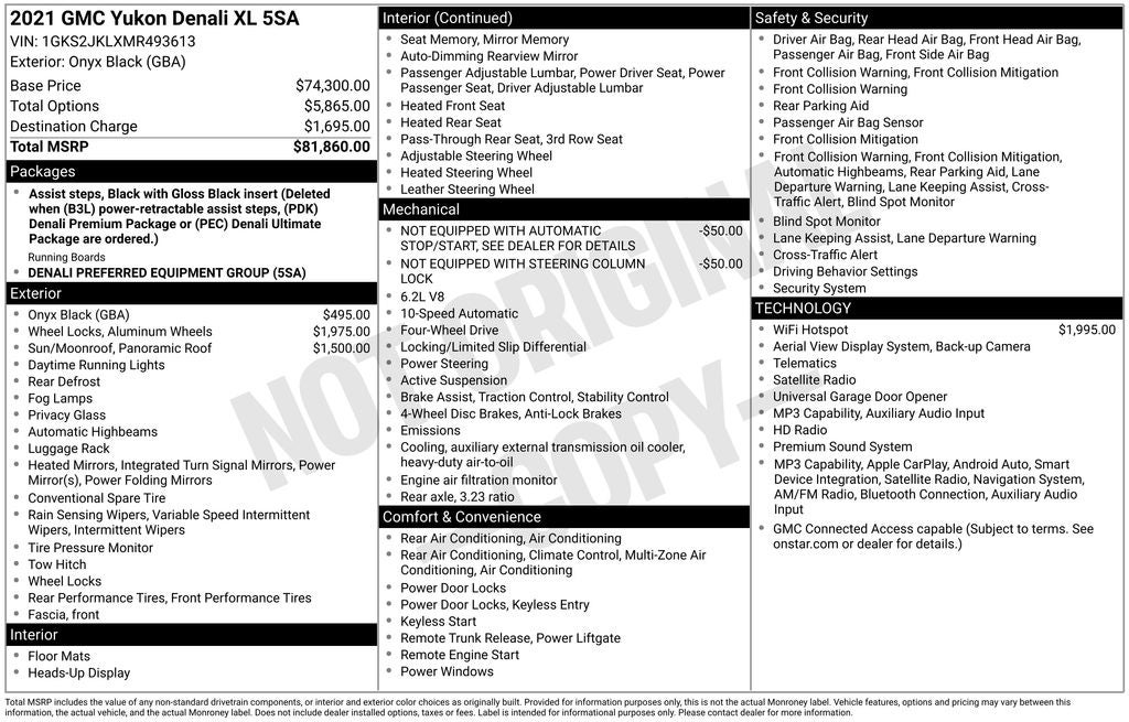 2021 GMC Yukon XL Onyx Black Denali 4WD 10-Speed Automatic with Overdrive EcoTec3 6.2L V8 4WD, 12-Way Power Seat Adjusters, 15 Diagonal Multi-Color Head-Up Display, 2 Presets For Outside Rearview Mirrors, 3rd Row 60/40 Power-Folding Split-Bench Seat, Bose 14-Speaker Surround w/CenterPoint, Bright Front & Rear Door Sill Plates, Chrome Door Handles w/Body-Color Strip, Dual Exhaust System, Dual-Pane Panoramic Power Sunroof, Galvano Bodyside Moldings, Hands-Free Power Programmable Rear Liftgate, HD Surround Vision, Heated & Ventilated Driver & Front Passenger Seats, Heated 2nd Row Outboard Position Seats, Heated Automatic Steering Wheel, Heated Driver & Front Passenger Seats, Hill Descent Control, Inside Rear-View Auto-Dimming Mirror, Magnetic Ride Control Suspension, Navigation System, Outside Heated Power-Adjustable Mirrors, Power driver seat, Power Liftgate, Power Release 2nd Row Bucket Seats, Power Tilt & Telescopic Steering Column, Preferred Equipment Group 5SA, Rear Pedestrian Alert, Safety Alert Seat, Universal Home Remote.