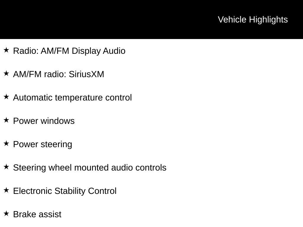- Radio w/Seek-Scan, Clock, Speed Compensated Volume Control, Steering Wheel Controls and Voice Activation