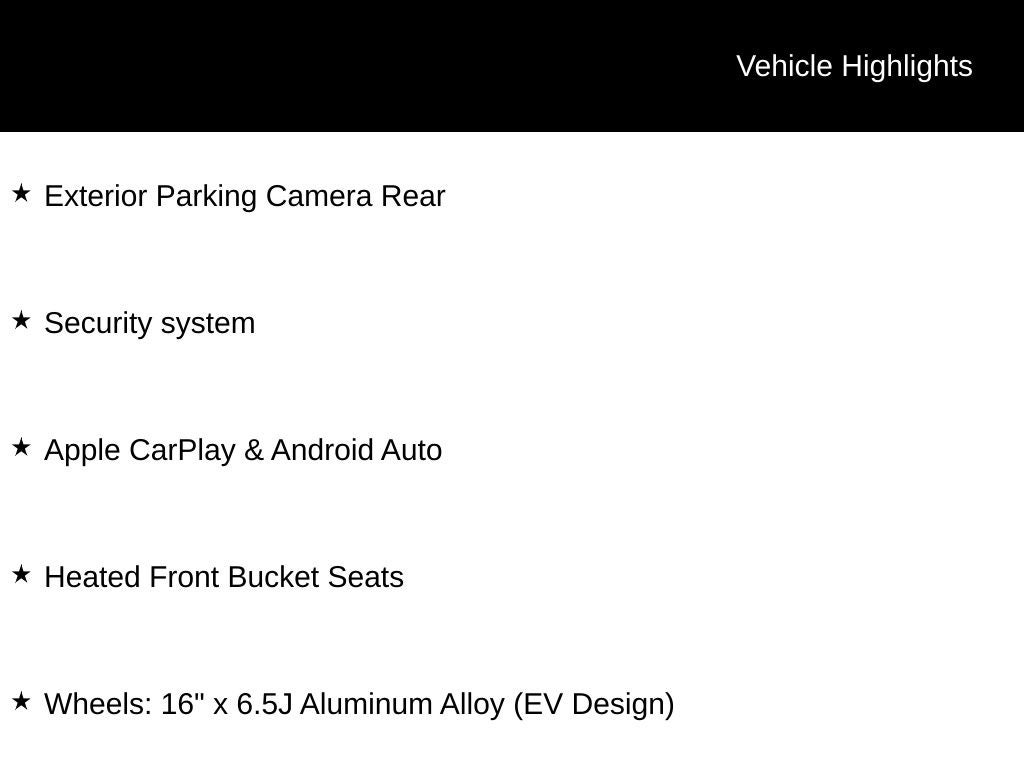 - Wheels: 16" x 6.5J Aluminum Alloy (EV Design)
