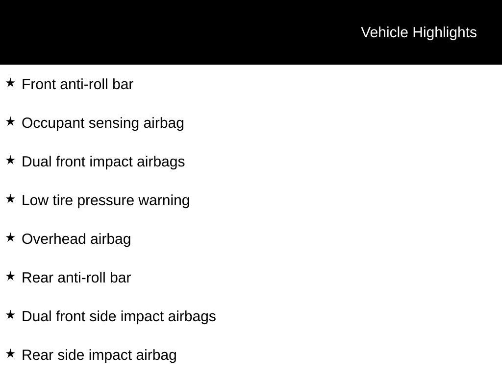 - Front Bucket Seats -inc: 6-way manually adjustable driver's seat and 6-way manually adjustable passenger seat w/seatback pocket