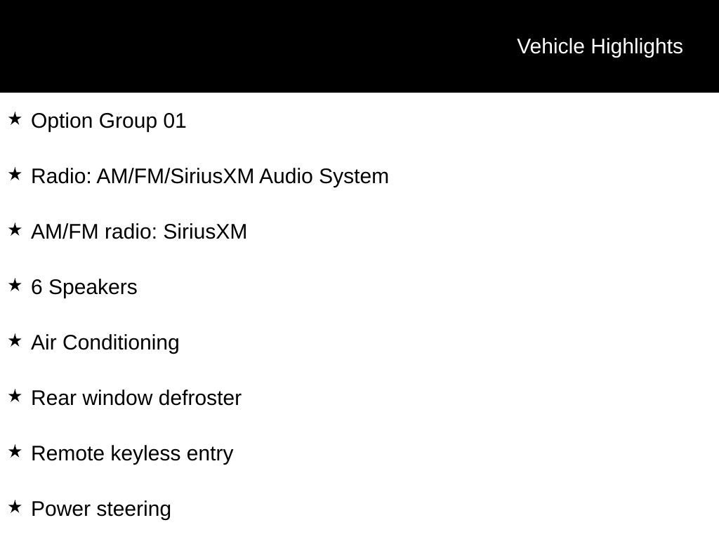 - Radio w/Seek-Scan, Clock, Speed Compensated Volume Control and Steering Wheel Controls