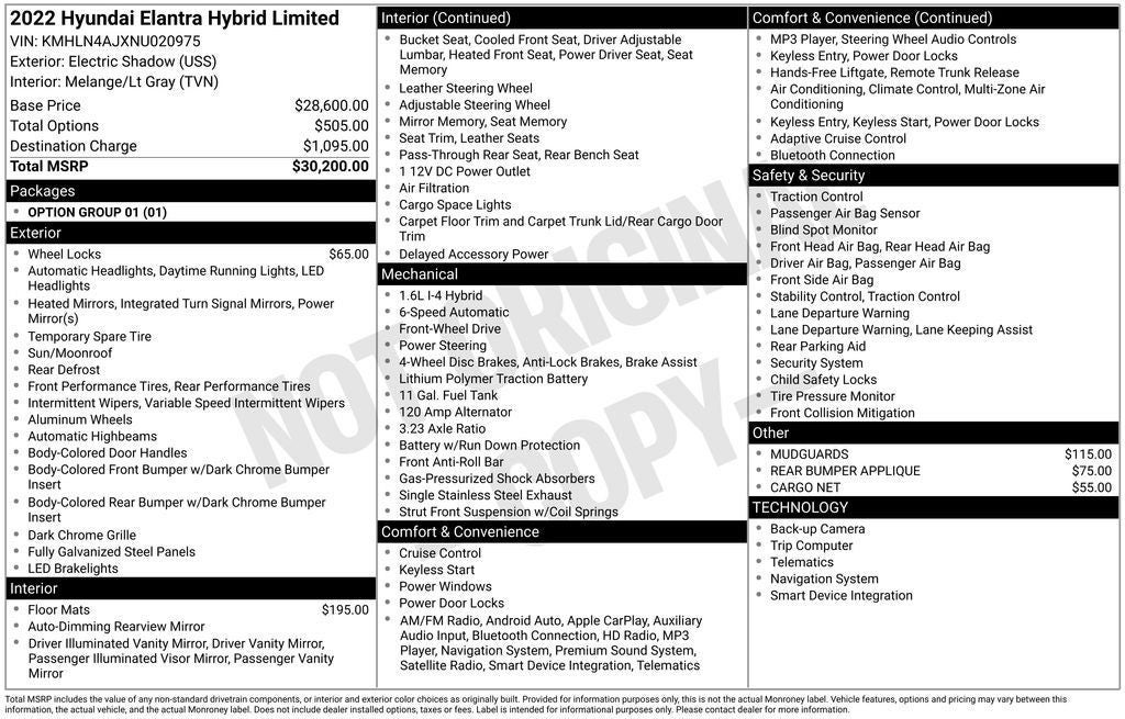 - Vehicle Name: Hyundai Elantra Hybrid