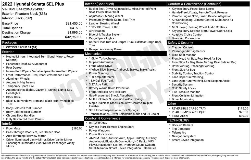Price excludes Dealer Processing Charge (not required by law):$1199