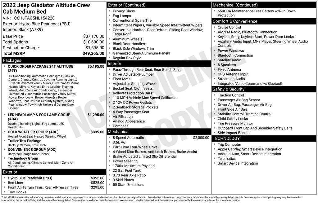 Price excludes Dealer Processing Charge (not required by law):$1199