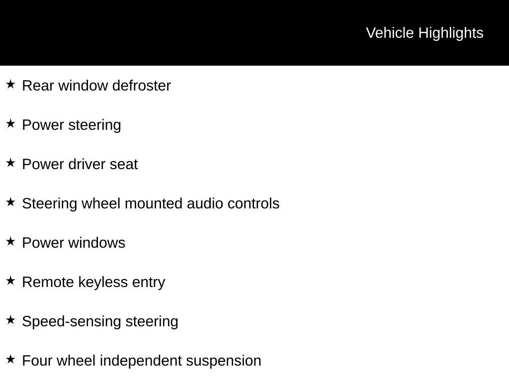 - Tailgate/Rear Door Lock Included w/Power Door Locks