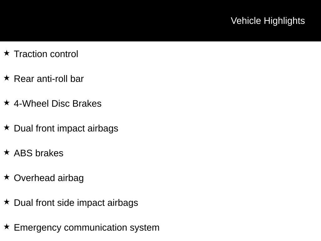 - 4-Wheel Disc Brakes w/4-Wheel ABS, Front Vented Discs, Brake Assist, Hill Hold Control and Electric Parking Brake