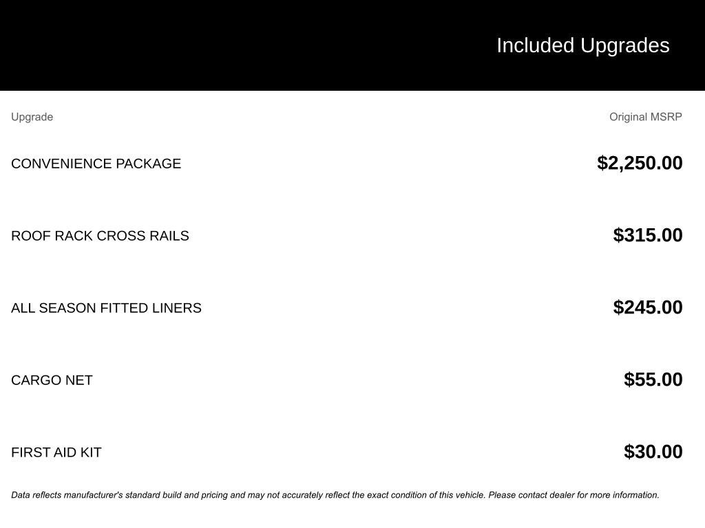 - 4-Wheel Disc Brakes w/4-Wheel ABS, Front Vented Discs, Brake Assist, Hill Descent Control, Hill Hold Control and Electric Parking Brake