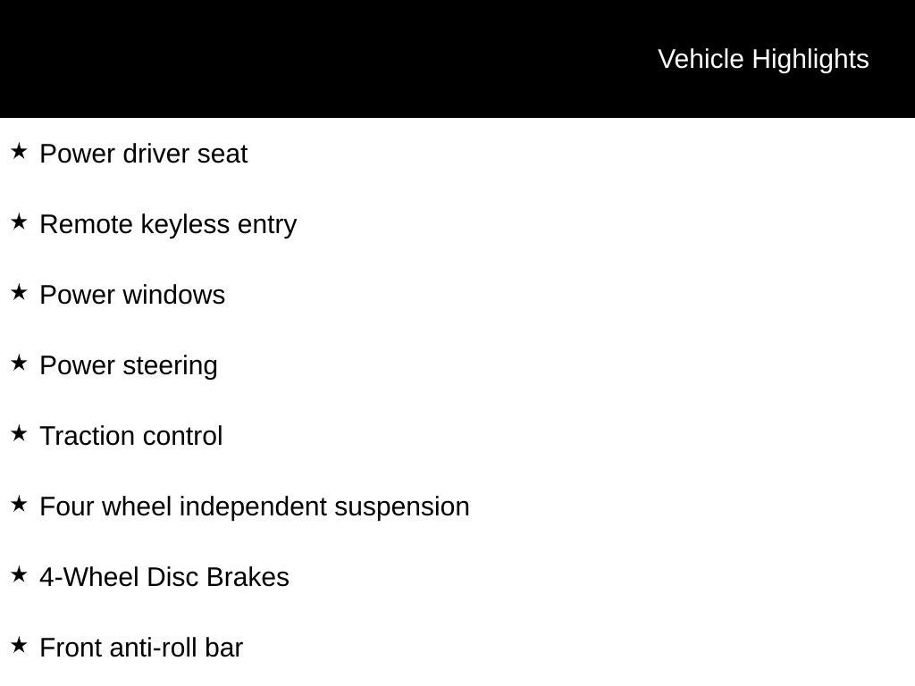 - 4-Wheel Disc Brakes w/4-Wheel ABS, Front Vented Discs, Brake Assist, Hill Descent Control, Hill Hold Control and Electric Parking Brake