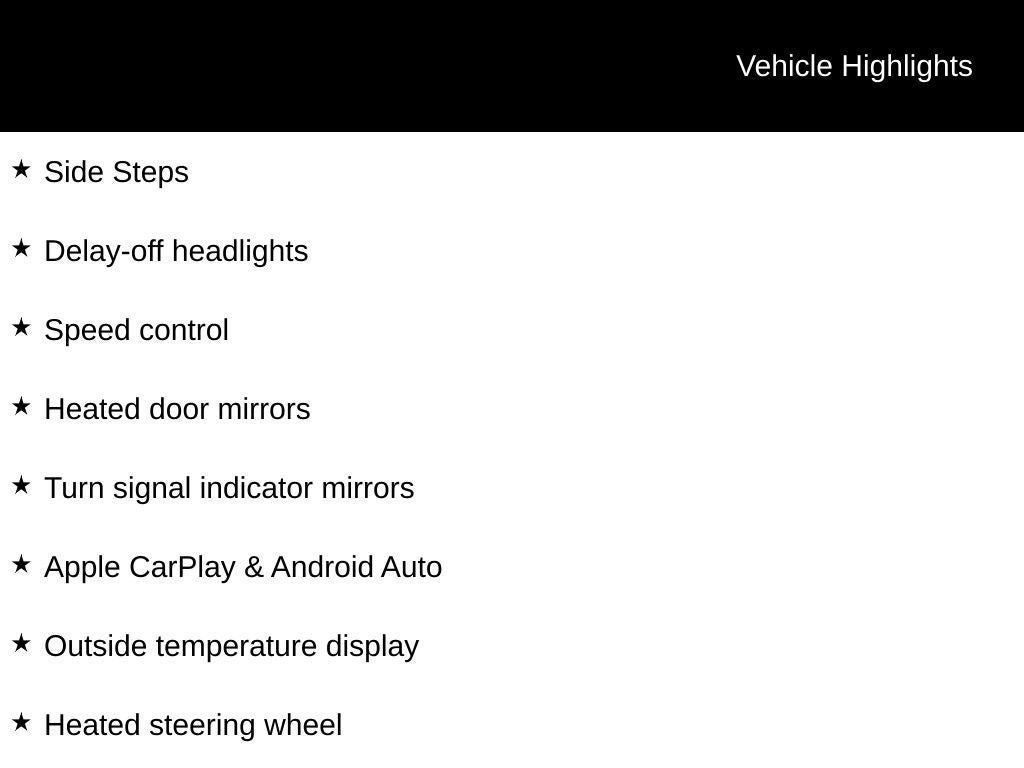 - Body-Colored Power Heated Side Mirrors w/Manual Folding and Turn Signal Indicator