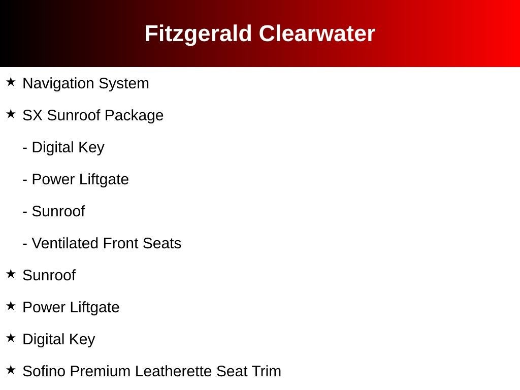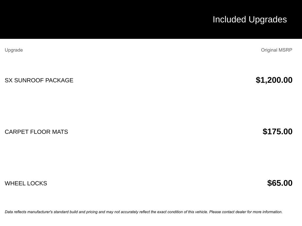 - SX Sunroof Package: Enjoy the convenience of a power liftgate, the comfort of ventilated front seats, and the open-air freedom of a sunroof.