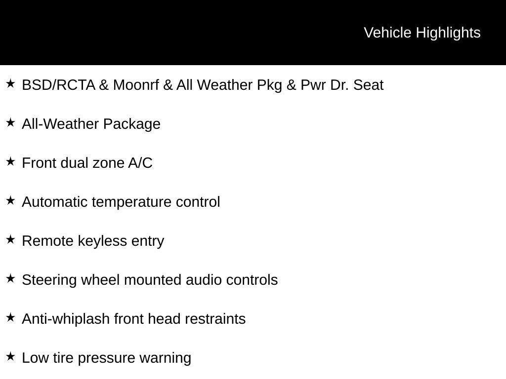 - Blind Spot Detection w/Rear Cross-Traffic Alert