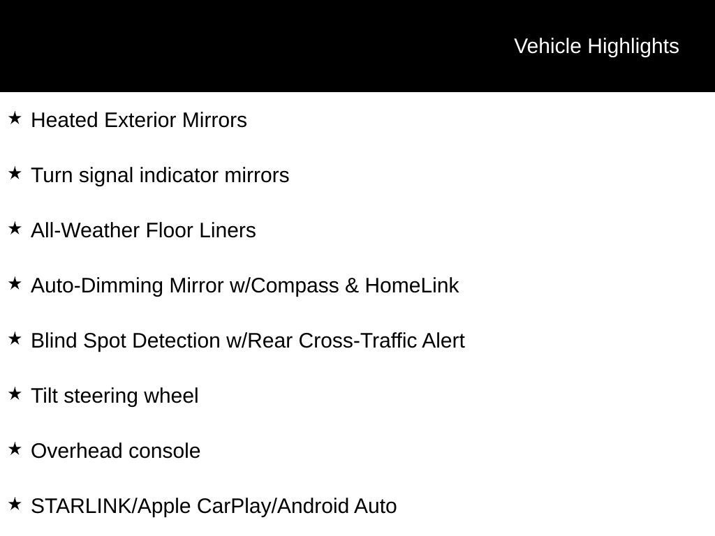 - STARLINK/Apple CarPlay/Android Auto