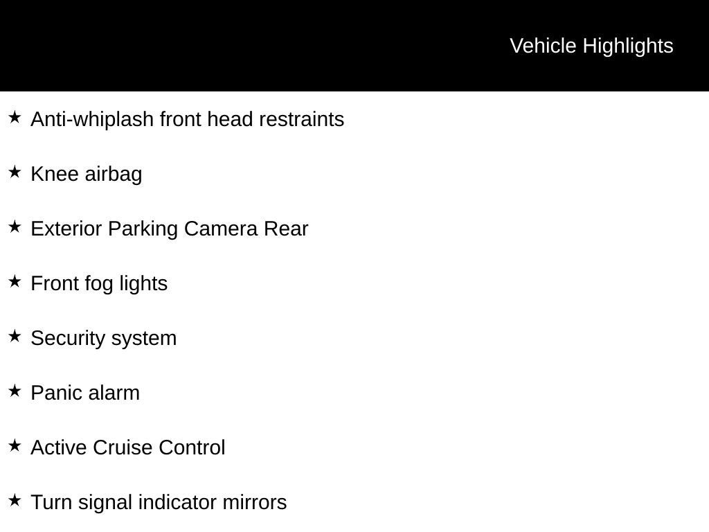 - Front Bucket Seats -inc: 6-way manual driver's seat, 4-way manual front passenger's seat w/seat fore/aft adjustment full width lever, reclining seatbacks, height adjustable head restraints and whiplash reducing protection
