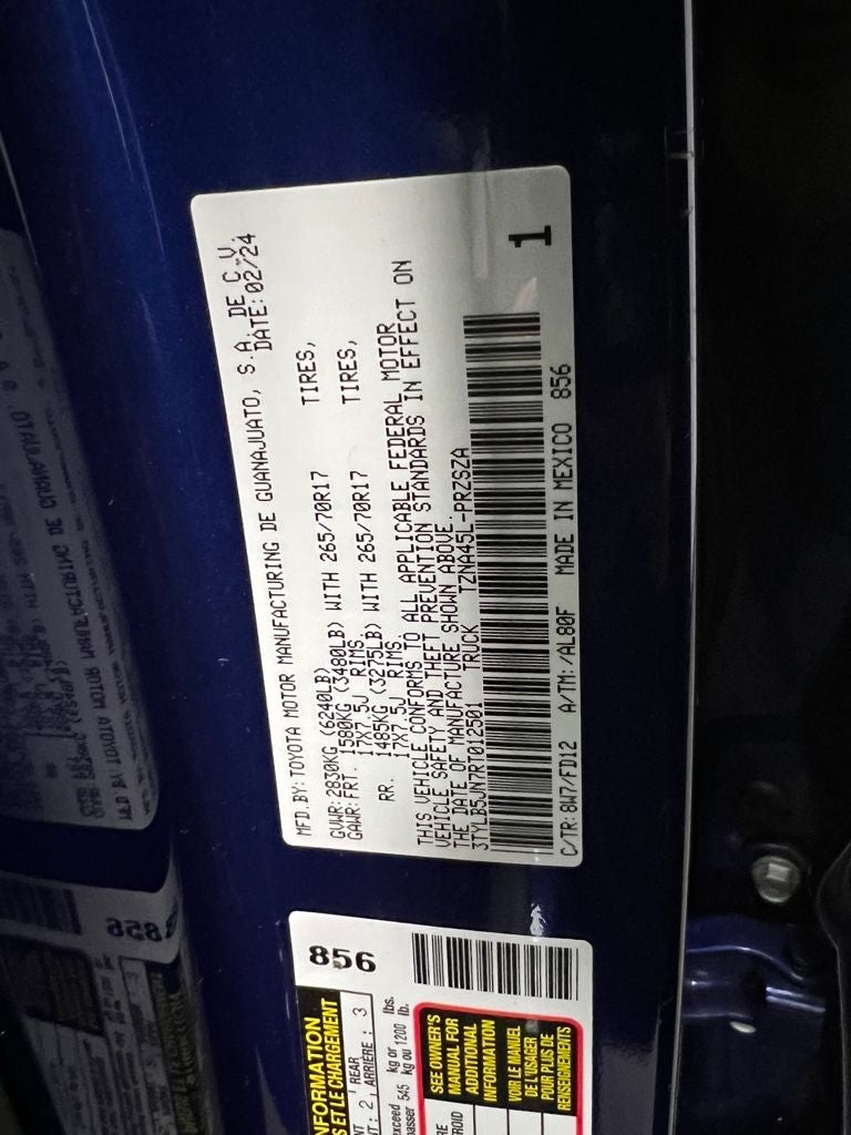 Blue Crush Metallic 2024 Toyota Tacoma TRD Off-Road 4WD 8-Speed Automatic 2.4L 4-Cylinder 4WD, Air Conditioning, Apple CarPlay/Android Auto, Auto-dimming Rear-View mirror, Exterior Parking Camera Rear, Front fog lights, Radio: 8 Toyota Audio Multimedia, Remote keyless entry, Speed control, Steering wheel mounted audio controls, TRD Off Road Package, Turn signal indicator mirrors, Wheels: 17 TRD Off-Road Alloy.