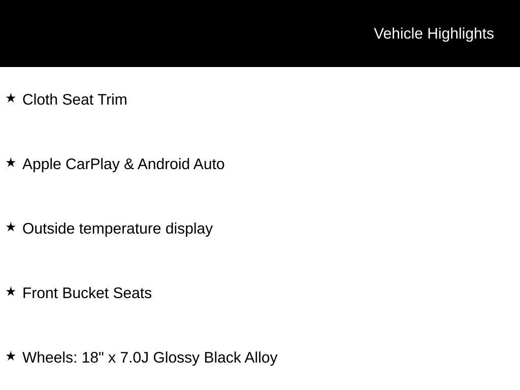 - Wheels: 18" x 7.0J Glossy Black Alloy