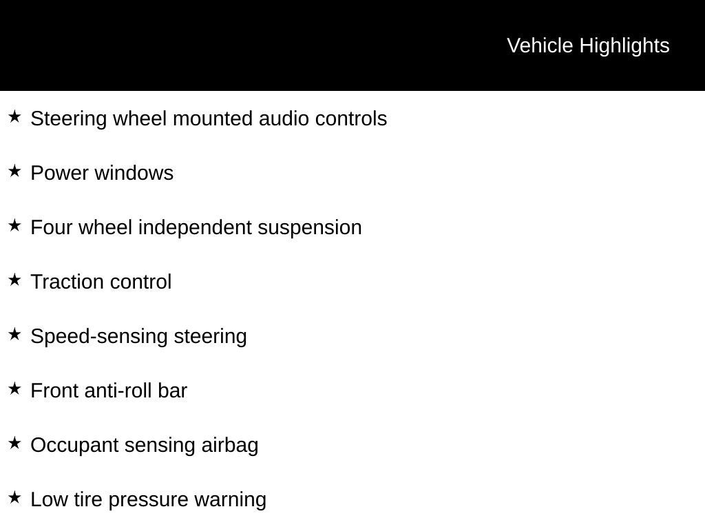 - Radio w/Seek-Scan, Clock, Speed Compensated Volume Control and Steering Wheel Controls