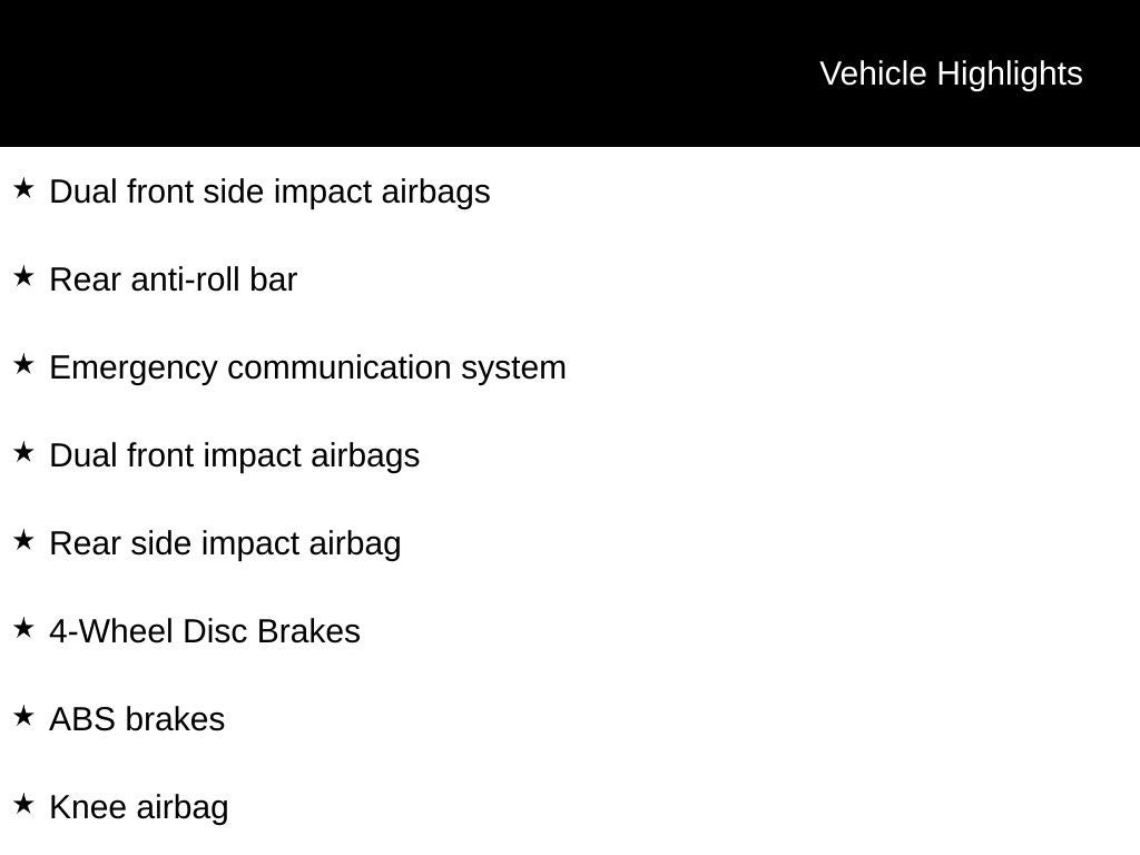 - Brake ABS System: 4-Wheel