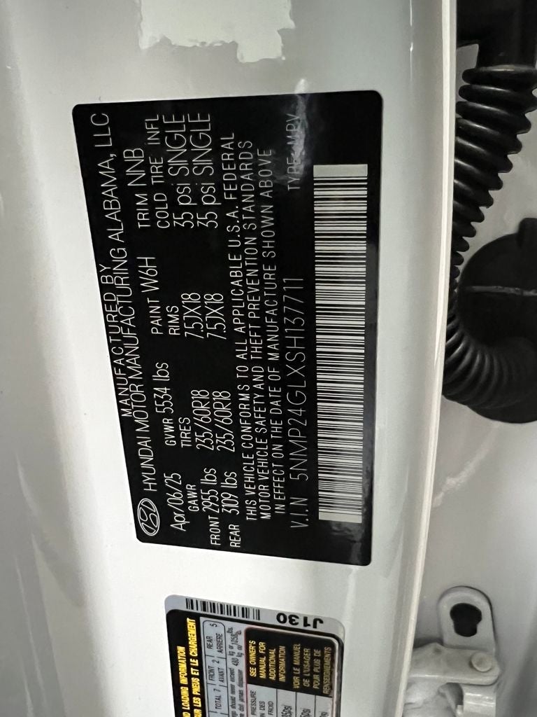** ONE OWNER ** HYUNDAI CERTIFIED ** CLEAN CARFAX ** NO ACCIDENTS ** Serenity White 2025 Hyundai Santa Fe SEL FWD Shiftronic 2.5L I4 Black w/Premium Nappa Leather Seat Trim, 18 x 7.5J Alloy Wheels, 3rd row seats: bench, Air Conditioning, Apple CarPlay & Android Auto, Delay-off headlights, Emergency communication system, Exterior Parking Camera Rear, Front dual zone A/C, H-Tex Leatherette Seat Trim, Heated Front Bucket Seats, Option Group 01, Outside temperature display, Power driver seat, Power Liftgate, Radio: AM/FM/HD Display Audio, Speed control. ** HYUNDAI CERTIFIED ** Recent Arrival! 20/29 City/Highway MPG