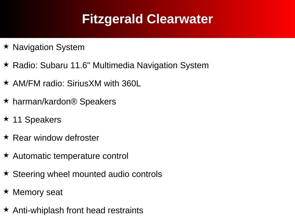 ** SUBARU CERTIFIED ** You will love our NO HAGGLE, NO HASSLE PRICING here at Fitzgerald Auto Mall. Ask us about our BUYER PROTECTION PLAN, LOANER CAR PROGRAMS, AND FREE Vehicle History Report -- ALL FITZGERALD PRICES ARE REAL PRICES WITH NO SNEAKY PRICE CONDITIONS OR ADDITIONAL RECONDITIONING OR CERTIFICATION CHARGES! BUY WITH CONFIDENCE, SUBARU CERTIFIED, FITZGERALD GUARANTEED WITH A WRITTEN,10 DAY/500 MILE WRITTEN MONEY BACK GUARANTEE!! 30 DAY/1500 MILE EXCHANGE POLICY!! ** No Added Market Adjustments or Hidden Fees! Transparency You Can Trust, That's The FitzWay!